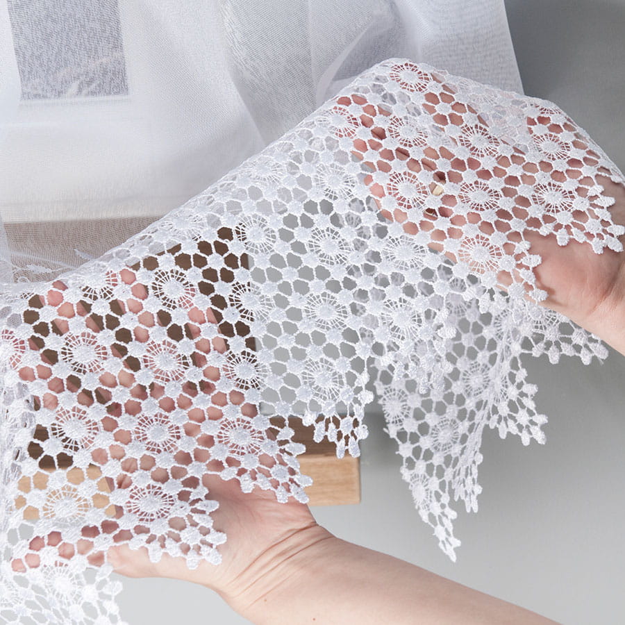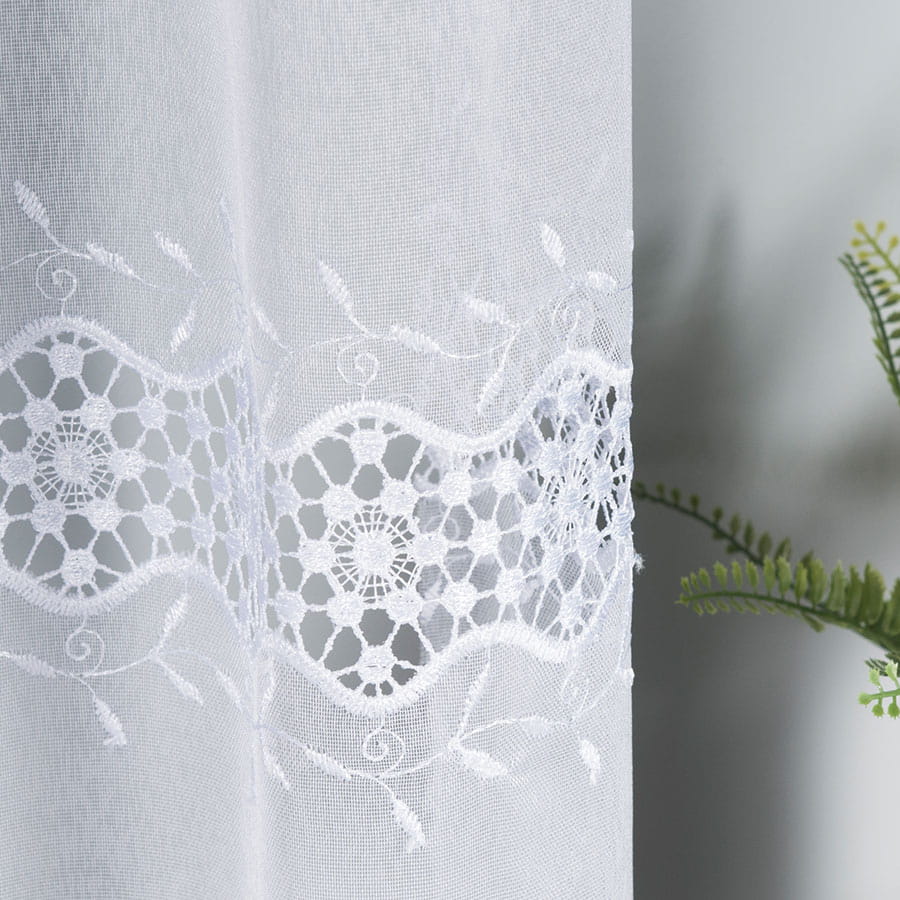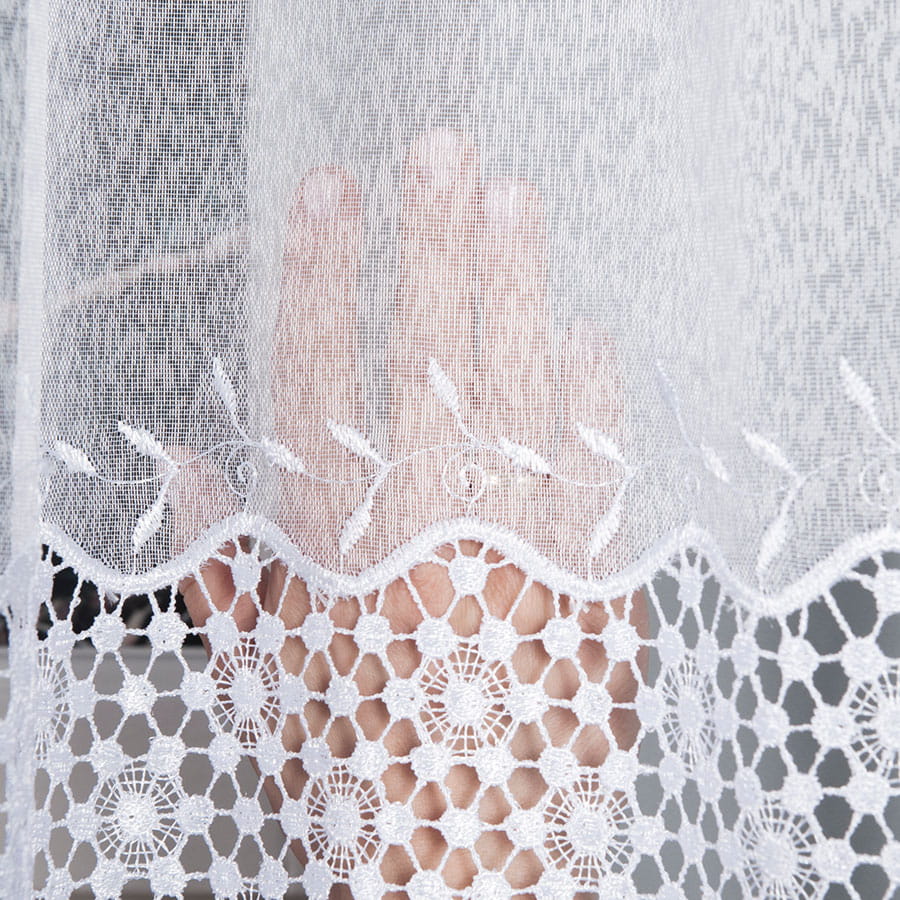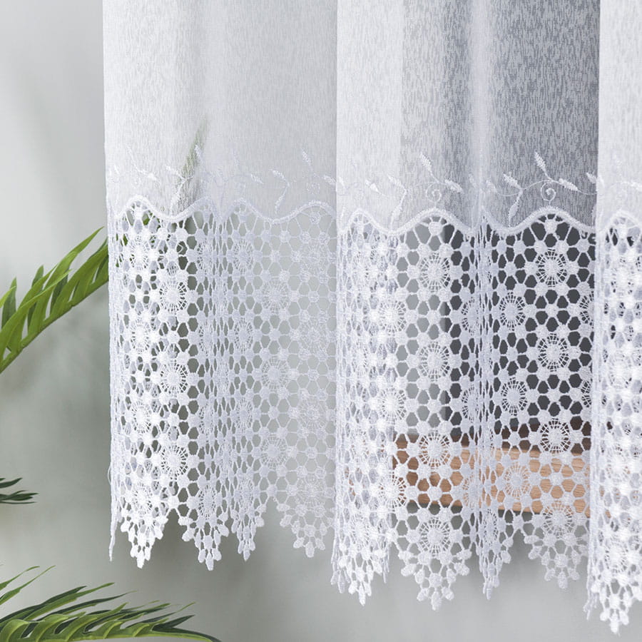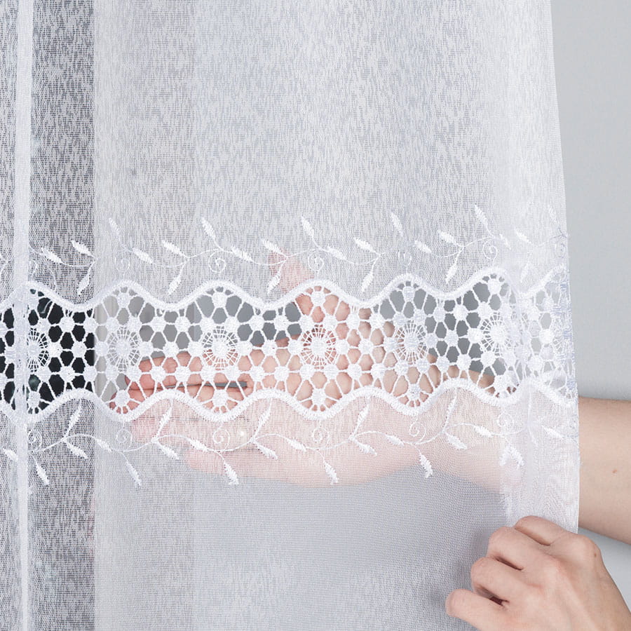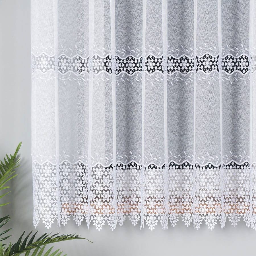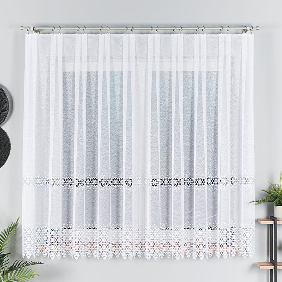 Firanka z aplikacją na markizecie ze wzorem pasowym, wysokość 160 cm, kolor biały