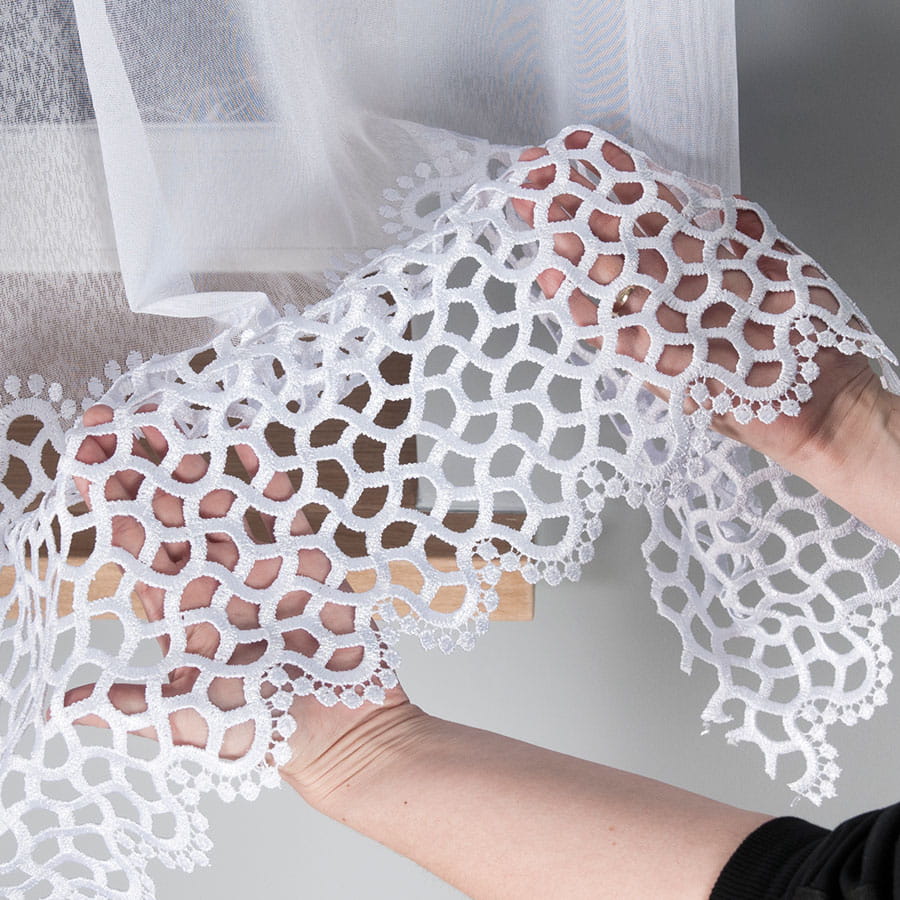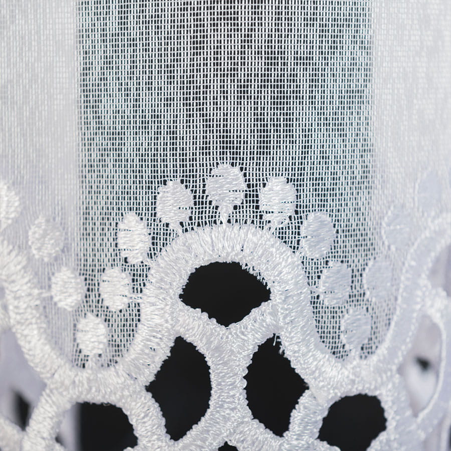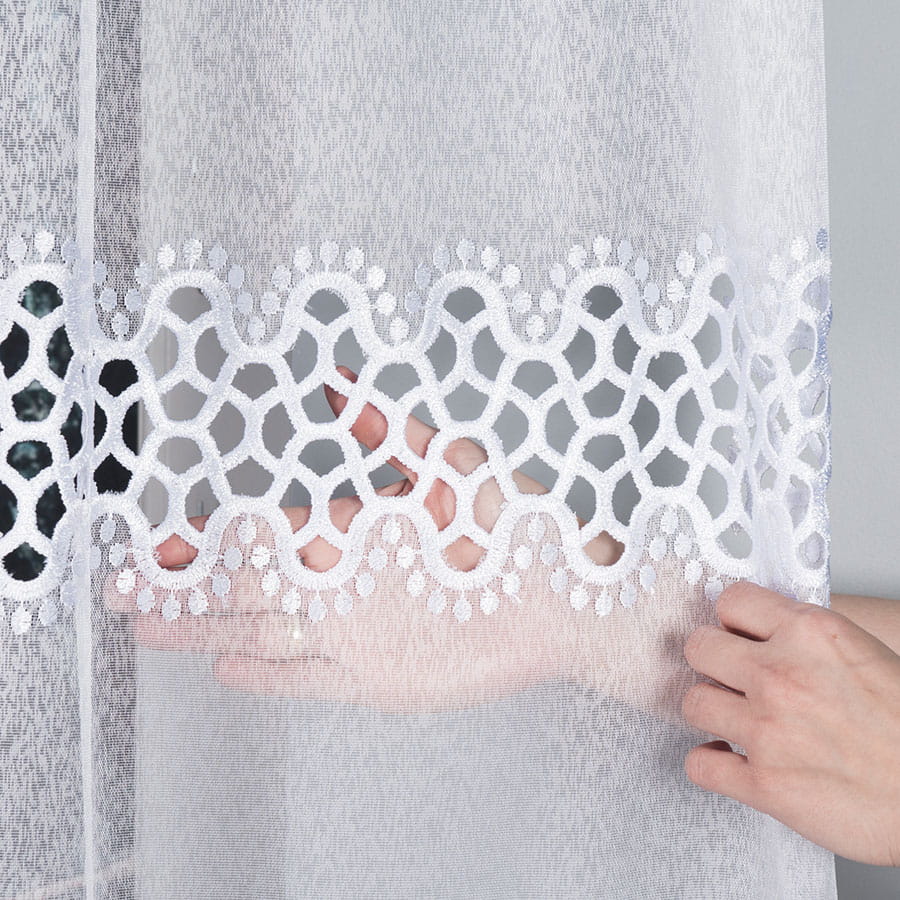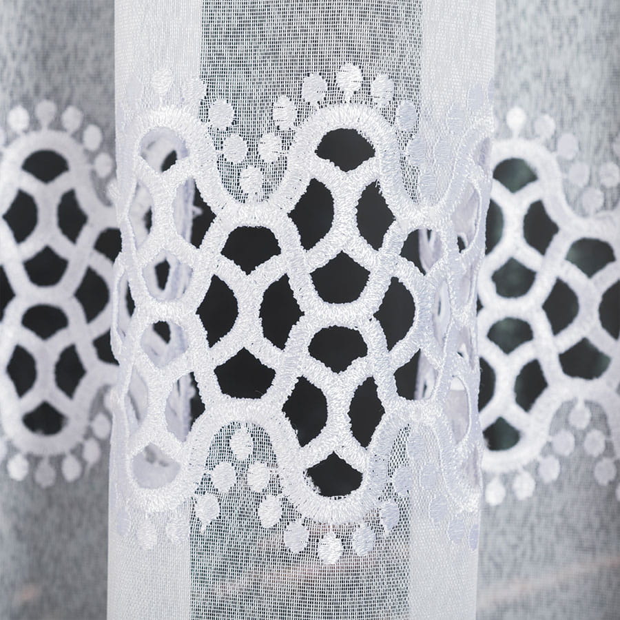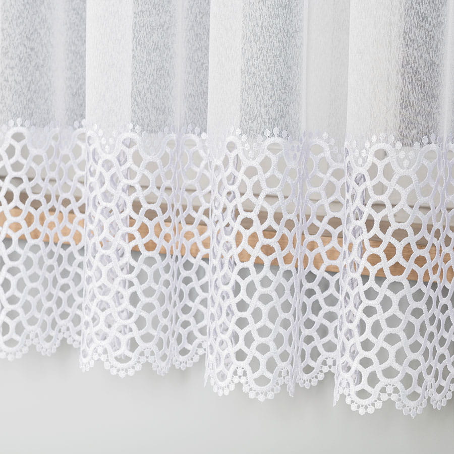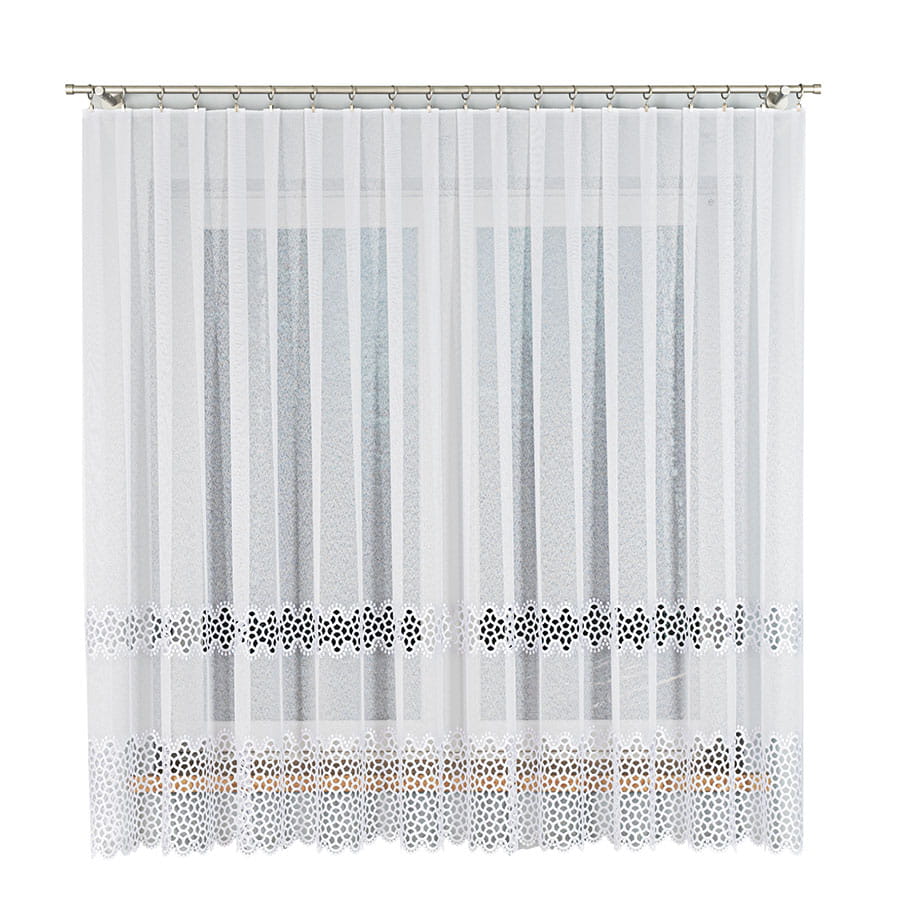 Firanka z aplikacją na markizecie ze wzorem pasowym, wysokość 175 cm, kolor biały