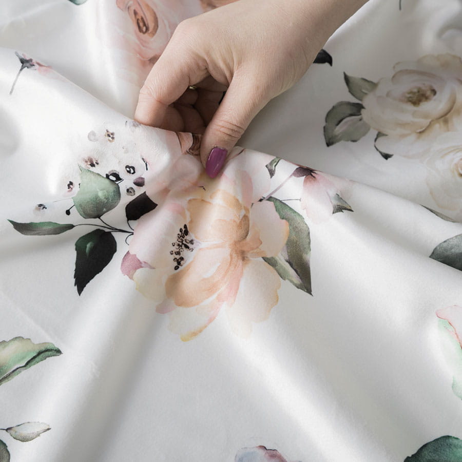 Bieżnik wodoodporny w delikatny, kwiatowy wzór na podkładzie VELVET.