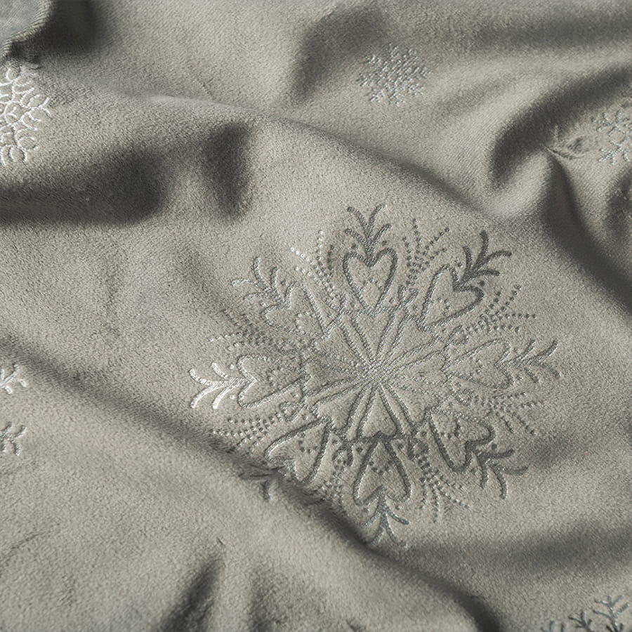 Serweta wodoodporna z tkaniny dekoracyjnej typu VELVET z metalicznym zdobieniem. Doskonale pasuje do tkaniny i innych dekoracji z tej samej serii. Rozmiar: 85x85 cm Gramatura: 200gsm Skład: 100% Poliester